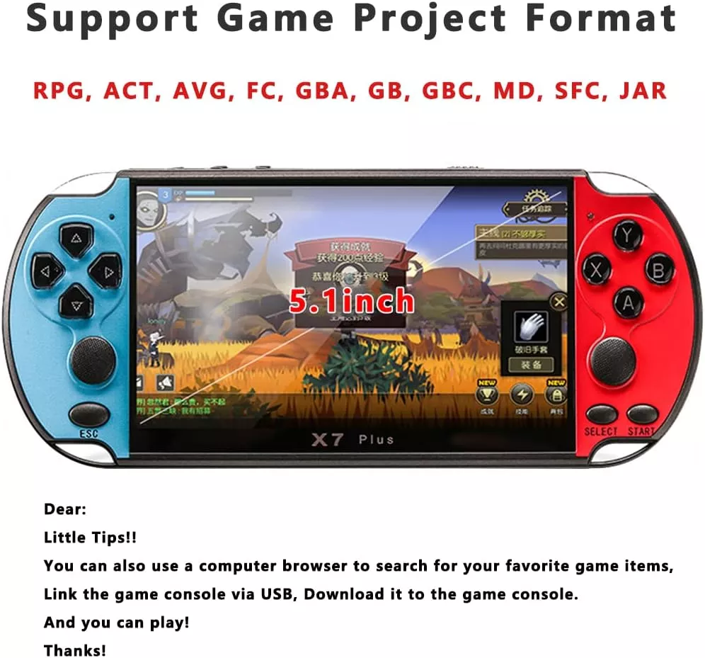 - ๐๐ฎ๐๐ใ5.1-INCH LARGE SCREENใ Large full-color TFT LCD screen, double protection, no eye damage for a long time. It has anti-scratch and anti-drop functions, bringing exciting gaming experience and better eye protection.-scratch and anti-drop functions, bringing exciting gaming experience and better eye protection.